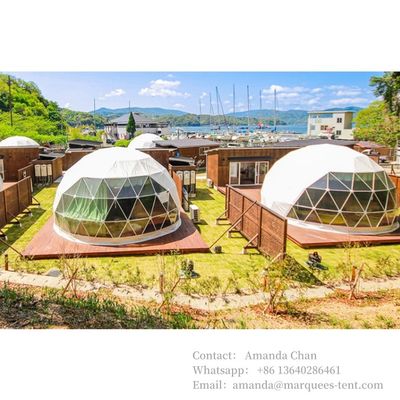 طراحی سفارشی:چادر های گلامپینگ گنبد هتل سفارشی بر اساس الزامات خاص، ترجیحات و نام تجاری هتل یا استراحتگاه طراحی شده اند.این ممکن است شامل ترکیب عناصر معماری منحصر به فرد باشد، طرح های رنگی، لوگوها و نشانه گذاری برای هماهنگی با نام تجاری کلی و موضوع ملک.